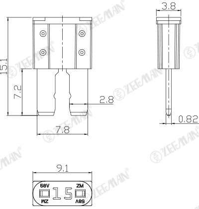 產(chǎn)品詳情 ATA 快熔保險絲 ATA 快熔保險絲 根據(jù)使用狀況,保險絲特性可能改變。 產(chǎn)品描述 額定電壓:小于直流58V 致斷容量: 1,000A@58V DC 使用溫度: -40℃~+125℃ 材質(zhì):1、鋅合金2、塑膠 執(zhí)行標準:JASO D612 推薦使用保險絲座: ZC-004C 選購 : 全系列 ATA 5 ATA 7.5 ATA 10 ATA 15 ATA 20 ATA 25 ATA 30 詢價 產(chǎn)品介紹 熔斷特性 額定電流% 熔斷時間 最小 最大 110% 100 hrs --- 135% 0.75 s 120 s 160% 0.25 s 50 s 200% 0.15 s 5 s 350% 0.04 s 0.5 s 600% 0.02 s 0.1 s 保險絲目錄 零部件編號 額定電流(A) 外殼顏色 ATA 5 5 A 褐色 ATA 7.5 7.5 A 棕色 ATA 10 10 A 紅色 ATA 15 15 A 藍色 ATA 20 20 A 黃色 ATA 25 25 A 白色 ATA 30 30 A 綠色